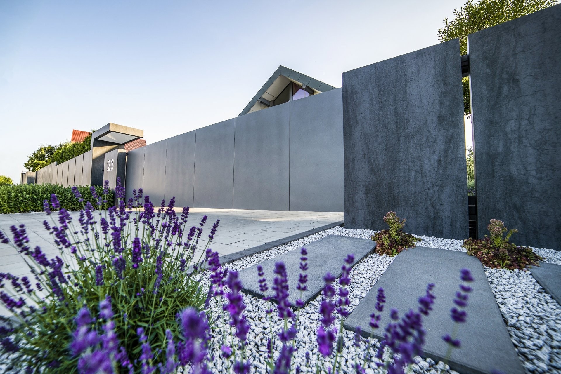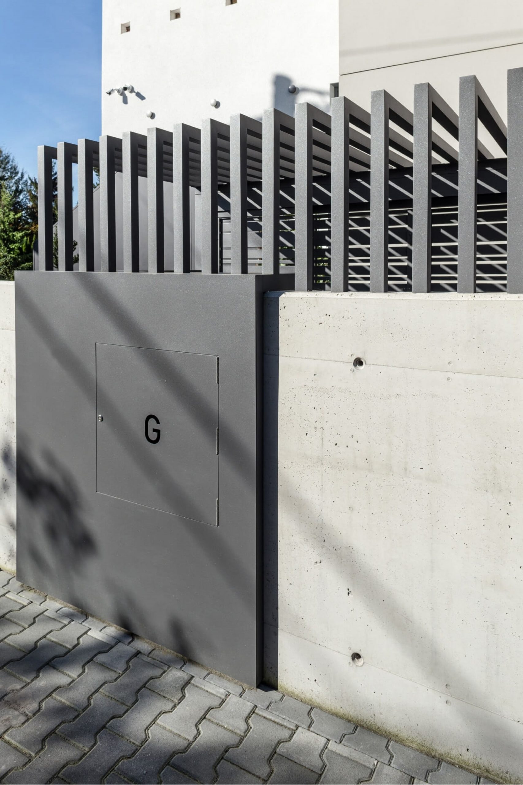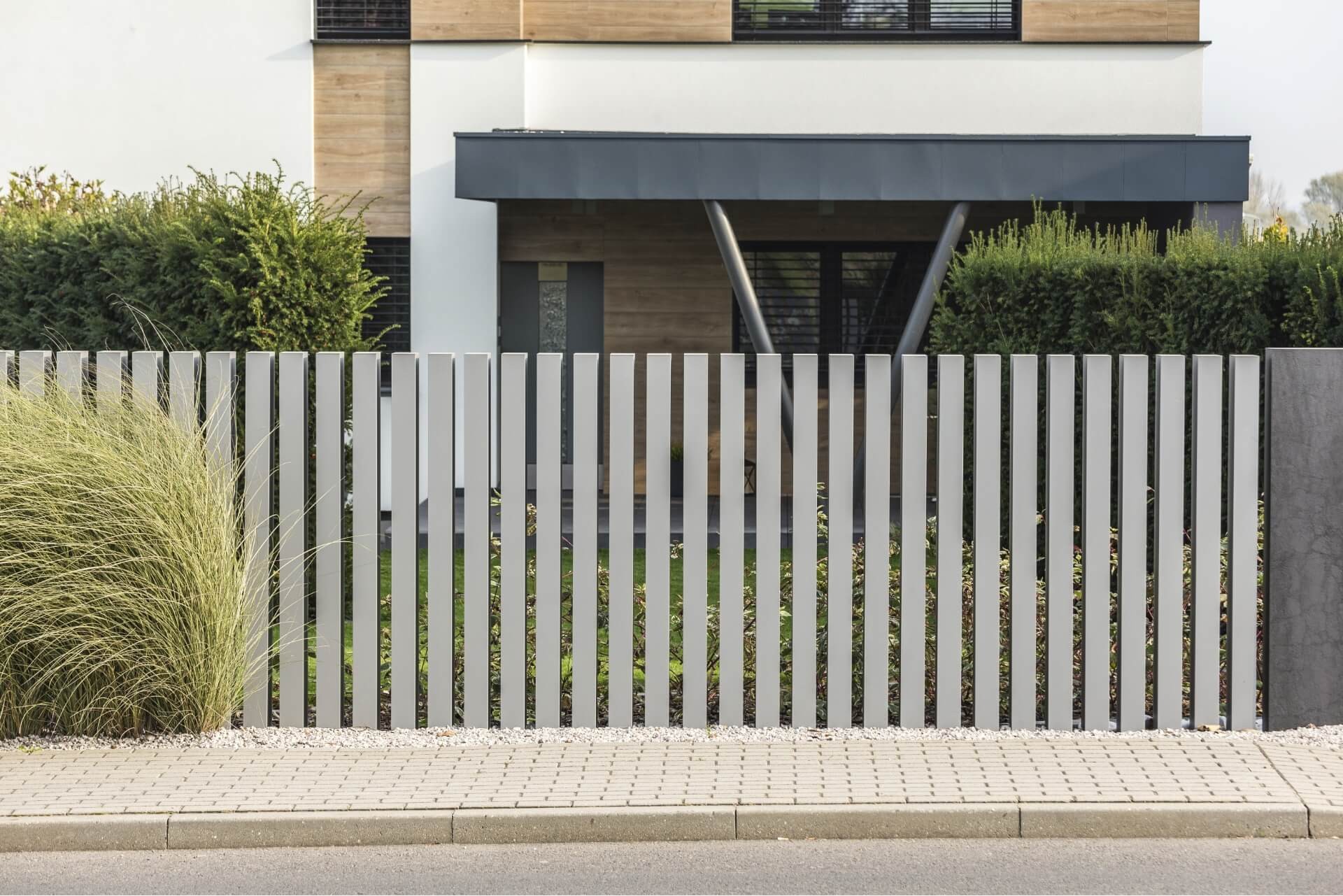 Langlebige Aluminiumpfosten können in jeder Farbe aus der RAL-Palette pulverbeschichtet oder mit Beschichtungen versehen werden, die Holz täuschend echt imitieren. Profile mit einem Querschnitt von 40×80 mm, 60×80 mm, 60×120 mm und massiven 100×200 mm Profilen sind erhältlich. Die Größe der Dehnungsfugen zwischen den Profilen kann im Bereich von 20 bis 120 mm angepasst werden. Eine Änderung der Dehnungsfuge und des Profilquerschnitts beeinflusst sowohl die Materialmenge und den Preis des Zauns als auch den Transparenzgrad. Je dichter die Profile, desto höher ist das Maß an Privatsphäre.