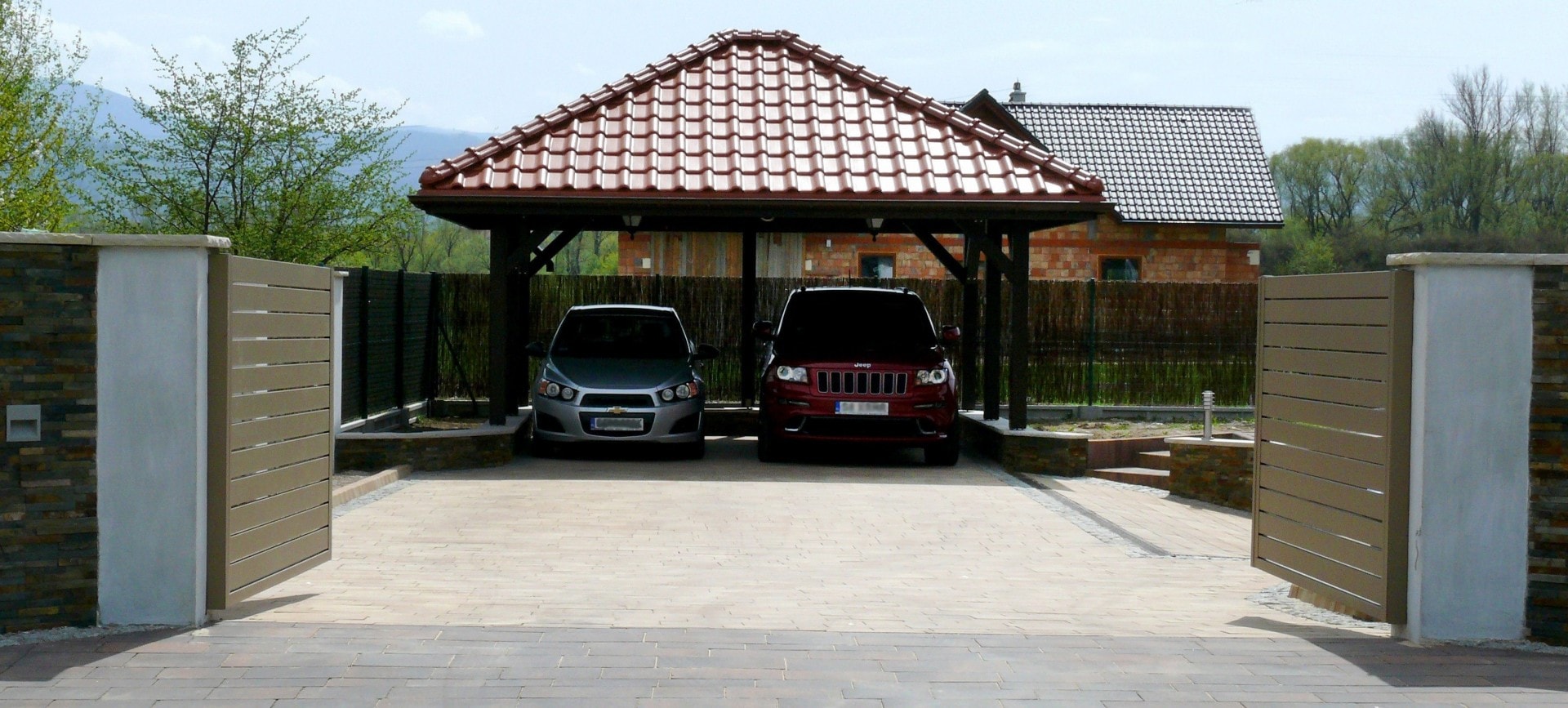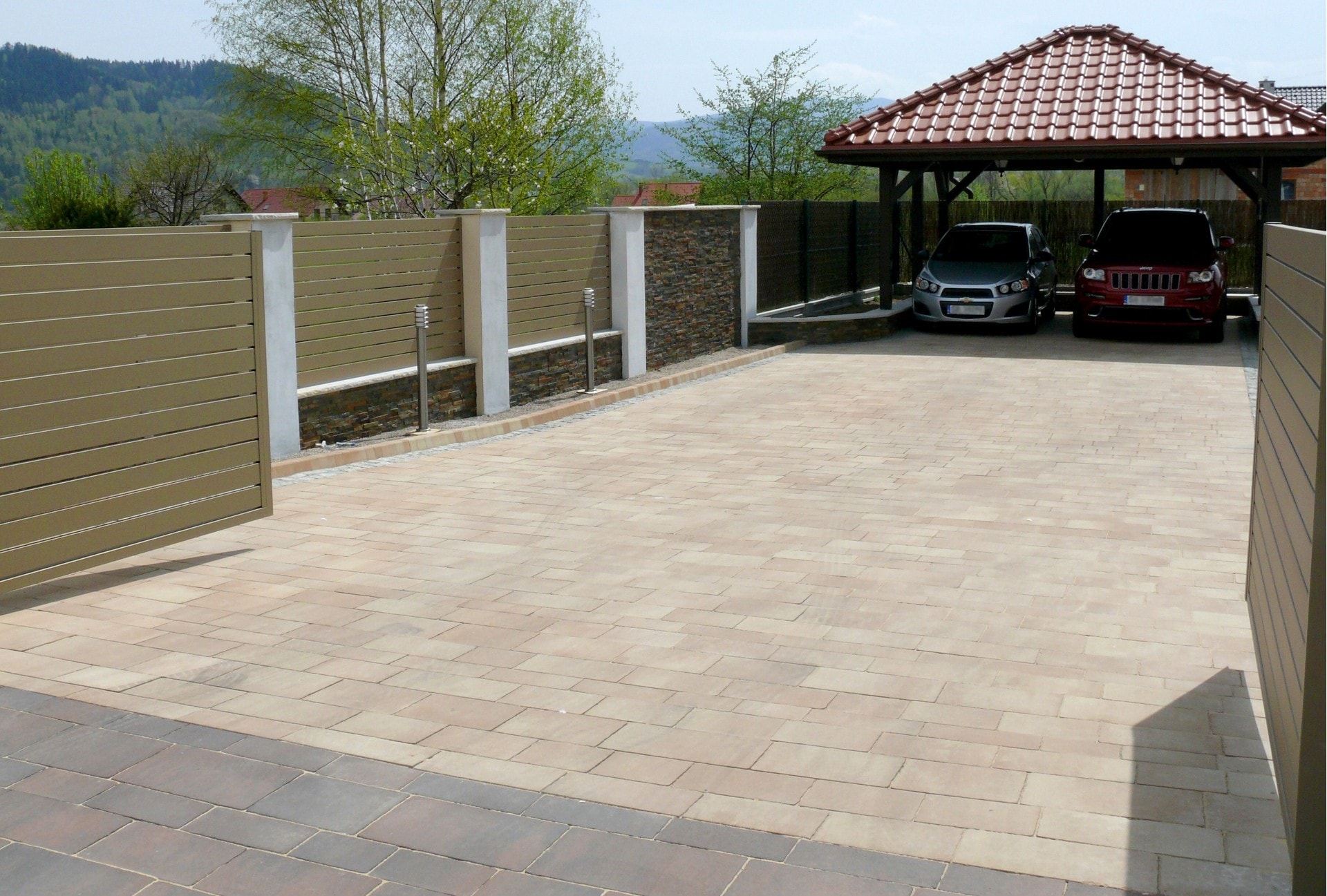 Arete Horizon Aluminiumspannen sind in einer vollständigen Palette von RAL-Farben erhältlich, sodass wir leicht eine perfekt passende Lösung gefunden haben. Wir entschieden uns für goldene Zaunpaneele, die sich nahtlos in den ursprünglichen Zaun einfügten. Der Kunde entschied sich außerdem für ein zweiflügeliges Tor mit Automatisierung und ein Tor mit vertikalen Seitenscharnieren.