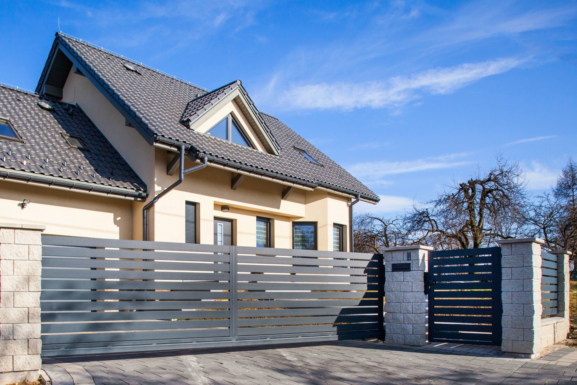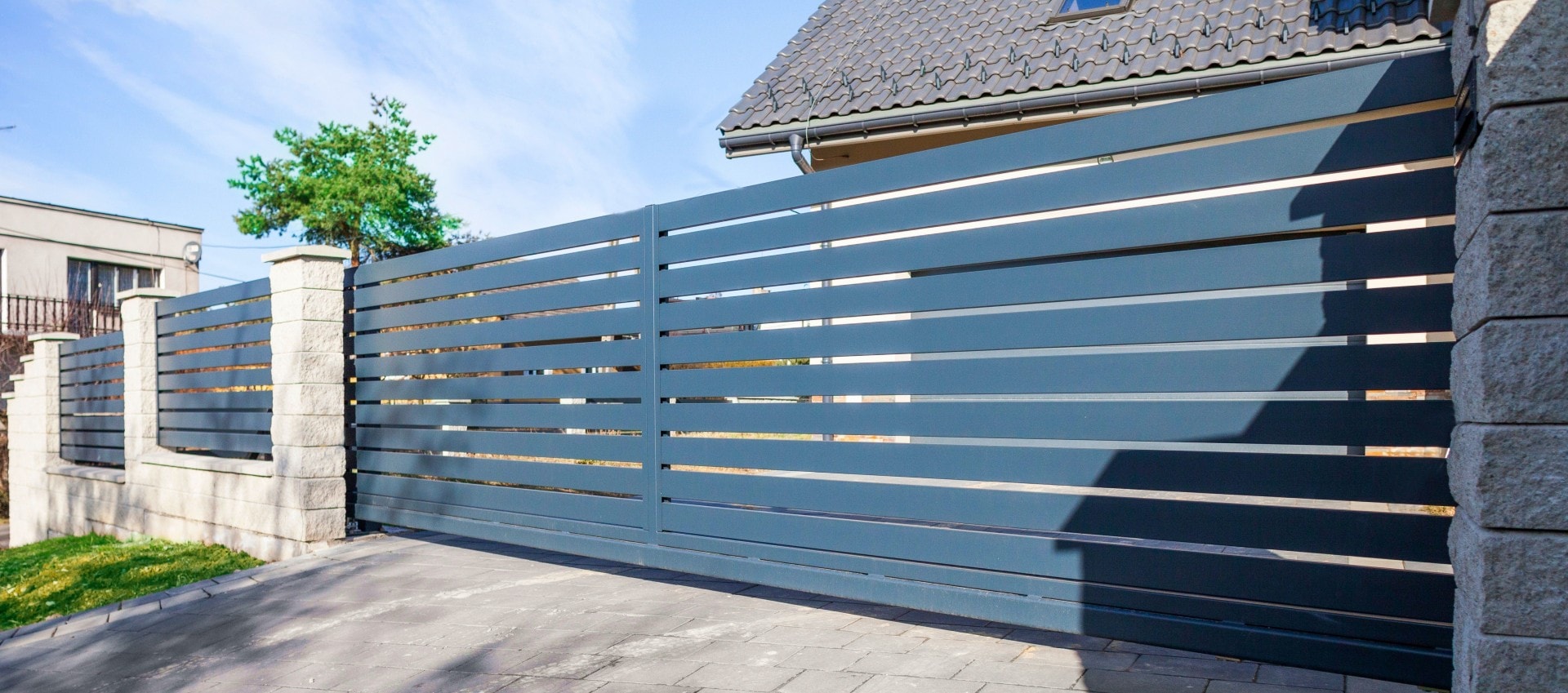 Klassische, minimalistische NEWLINE-Zäune kommen nie aus der Mode und erfordern dank der Verwendung moderner Materialien über viele Jahre hinweg keine Wartung. In diesem Projekt haben wir langlebige Arete Horizon Aluminium-Zaunpaneele in Graphit RAL7016 verwendet. Pfosten und Fundamente basieren auf den Rockin Crestone System-Spaltblöcken. Dank der speziellen Produktionstechnologie sehen sie von allen Seiten großartig aus und ihre Oberfläche ähnelt Sandstein. Pfosten und Wände der Zäune sind zusätzlich mit speziellen Abdeckungen versehen, die den Wasserabfluss erleichtern.