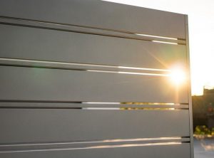 Wieder einmal beweisen wir, dass Zäune nicht langweilig sein müssen! Der Kunde wollte eine stark befahrene Zufahrtsstraße abwehren und Privatsphäre im Wohnzimmer und auf der Terrasse gewährleisten, die wir an der Rückseite des Hauses errichtet hatten. Der vordere, repräsentative Teil des Zauns sollte ganz anders aussehen – er sollte hell sein und den Blick auf die Straße freigeben.