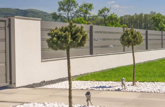 Visiere aus Architekturbeton erfüllen eine ästhetische Funktion und schützen den Zaun vor den schädlichen Auswirkungen von Wasser.