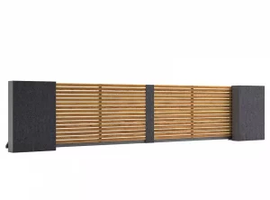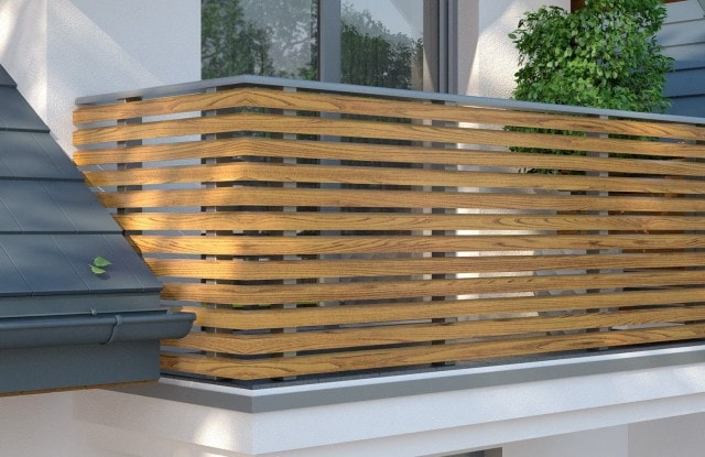 Die Basis des Zauns besteht aus Aluminiumprofilen mit Rautenquerschnitt, die mit einer holzähnlichen Beschichtung überzogen sind. Die besondere Form der Profile des Horizon Rombo-Systems ermöglicht einen freien Luftstrom und blockiert nicht den Zugang des Sonnenlichts.