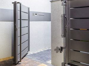 Die minimalistische Überdachung Rockina Cubero ist ein attraktives Funktionselement, das aus Materialien besteht, die optisch mit dem Rest des Zauns harmonieren.