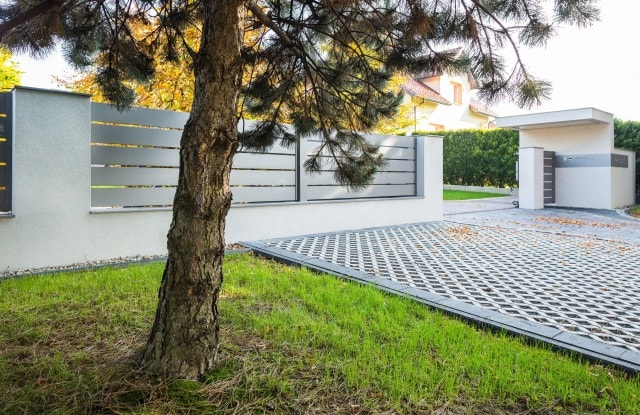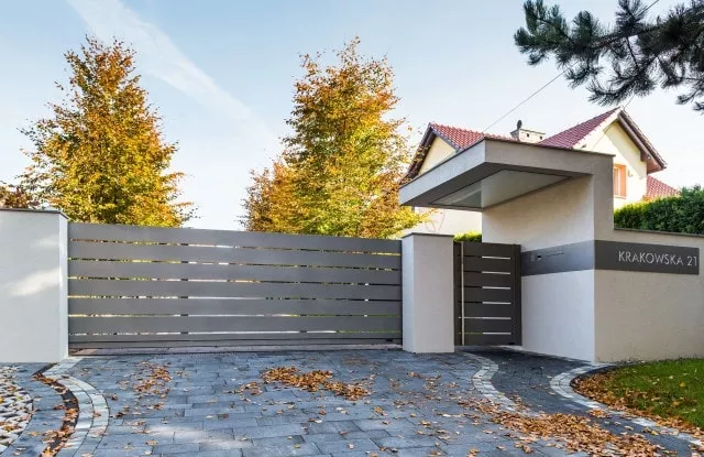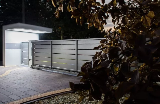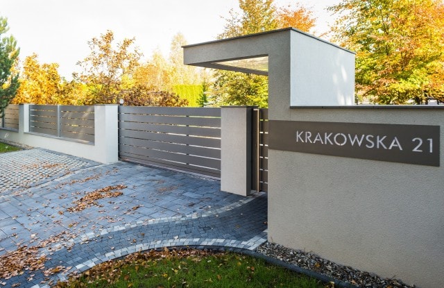 Ein Schiebetor ist eine praktische Lösung, denn nach dem Öffnen steht ein vollständiger Einfahrtsraum zur Verfügung, ohne hervorstehende Elemente, die das Auto beschädigen könnten.