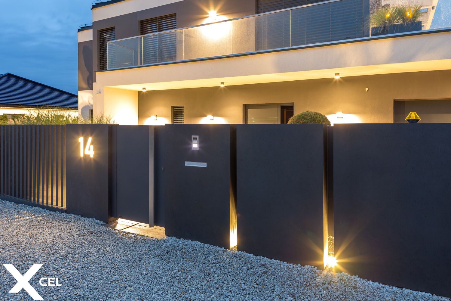 Custom, modern fencing systems with lighting details and gate automation. Luxury combined with technology and security in precise custom craftsmanship.