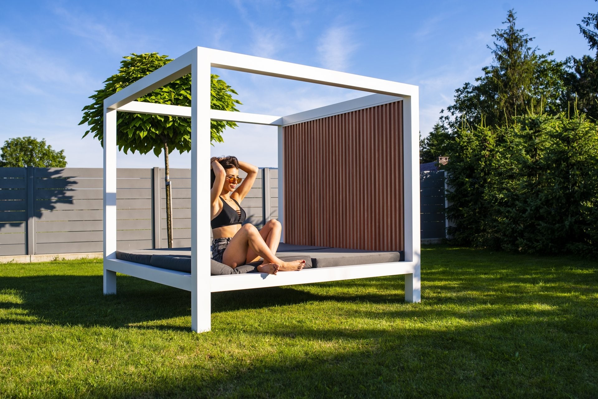 Daybed-Konstruktionen sind eine völlig neue Dimension der Gartenentspannung. Eine Miniatur-Pergola lässt Sie das Gefühl haben, in einem Luxushotel zu sein, aber dennoch in Ihrem eigenen Garten.